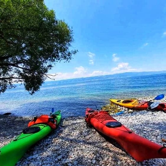 Доживеј кајак авантура на Охридското Езеро низ диви плажи и лагуни во Национален парк Галичица. Посета на „Залив на коските“, капење, ручек и целодневна организирана тура со водич.