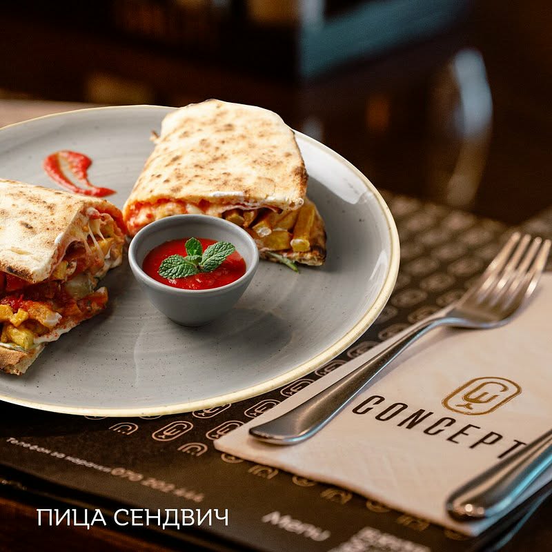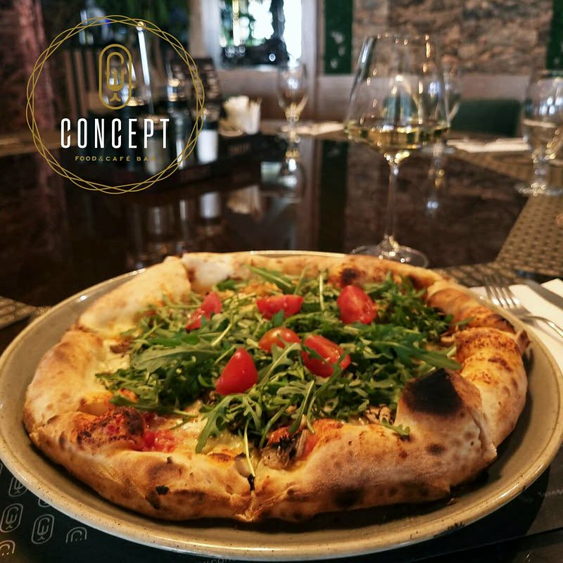 Менито на CONCEPT Food & Cafe Bar е внимателно креирано за да одговори на различни вкусови и преференции. Од вкусни пици со тенко, крцкаво тесто, преку кремасти пасти и сочни скара специјалитети, до свежи салати и модерни гурмански јадења — секој оброк се подготвува со висококвалитетни состојки и посветеност на деталите. Голема предност се и нивните десерти, меѓу кои се издвојуваат домашните колачи, чоколадни торти и традиционални слатки, идеални за кафе-пауза или сладок завршеток на оброкот.