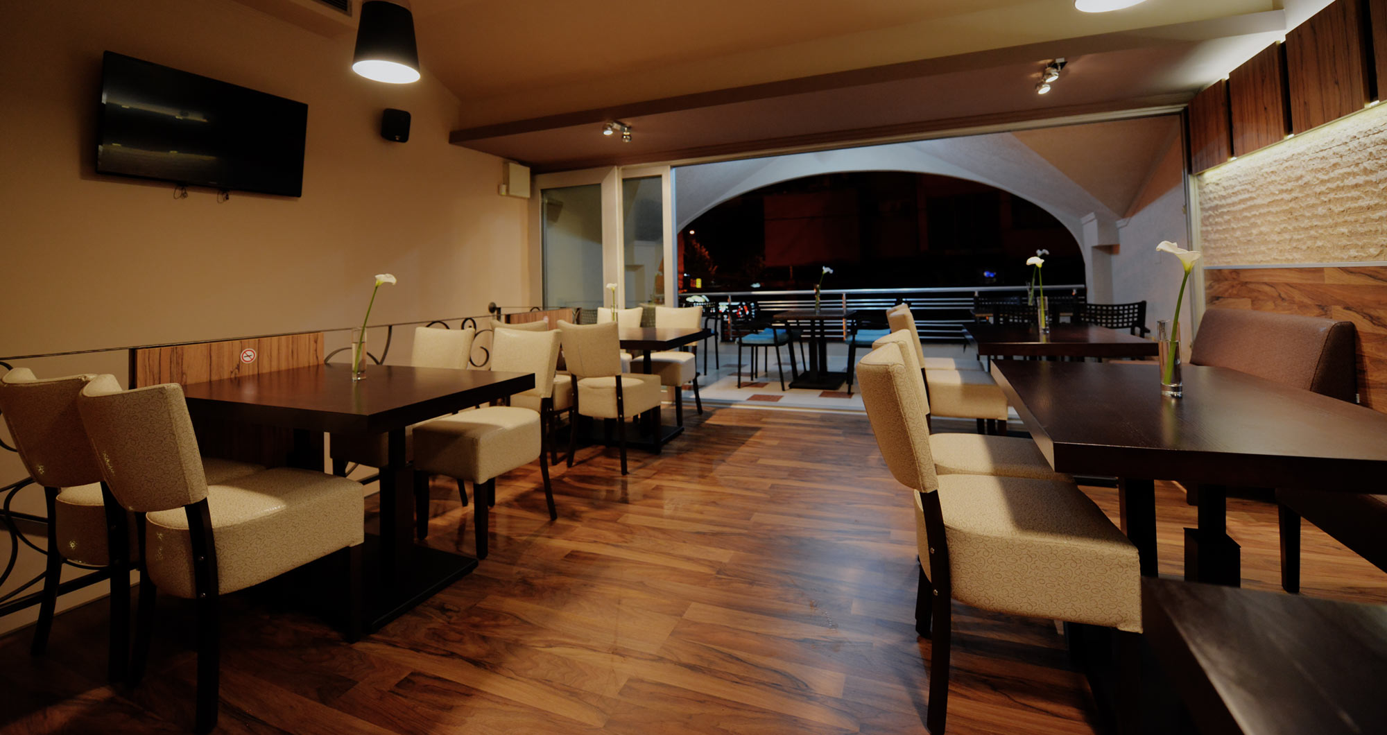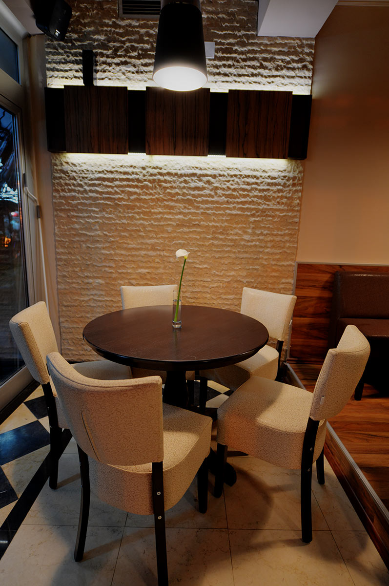 Менијата се инспирирани од светската кујна – од внимателно подготвени месни специјалитети, паста и ризото, до свежи салати и креативни гурмански јадења. Пицата исто така е еден од најпознатите избори во ресторанот, со тенко тесто и внимателно избрани состојки. Особен акцент се става на презентацијата и квалитетот на храната, а тимот на готвачи е фокусиран на свежи намирници и балансирани вкусови.