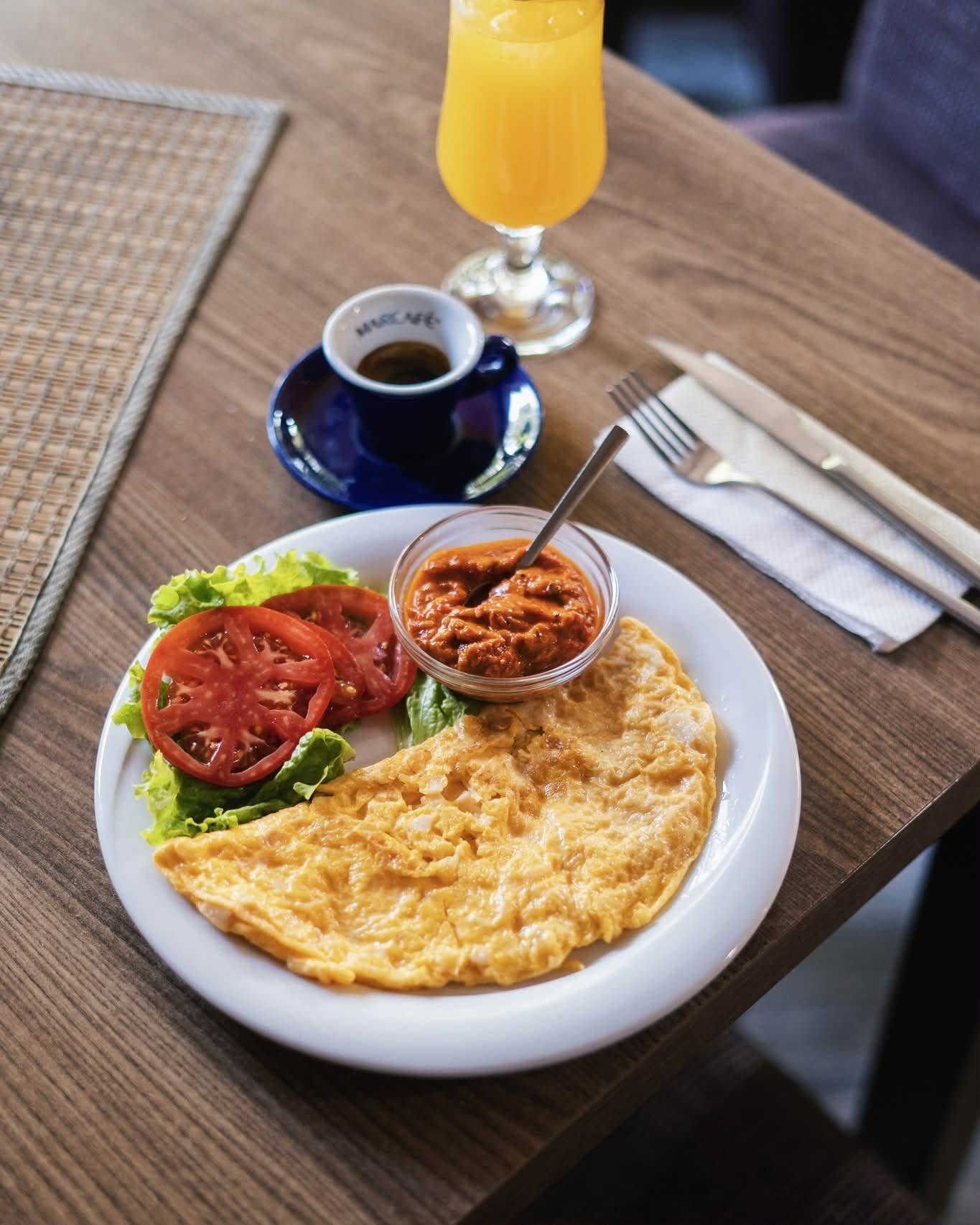 Амбиентот во ресторанот е елегантен, но топол и релаксиран, со современ ентериер кој создава пријатна атмосфера за ручеци, вечери, деловни средби или свечени настани. Професионалниот и љубезен персонал придонесува за високото ниво на услуга и целокупното гастрономско искуство.