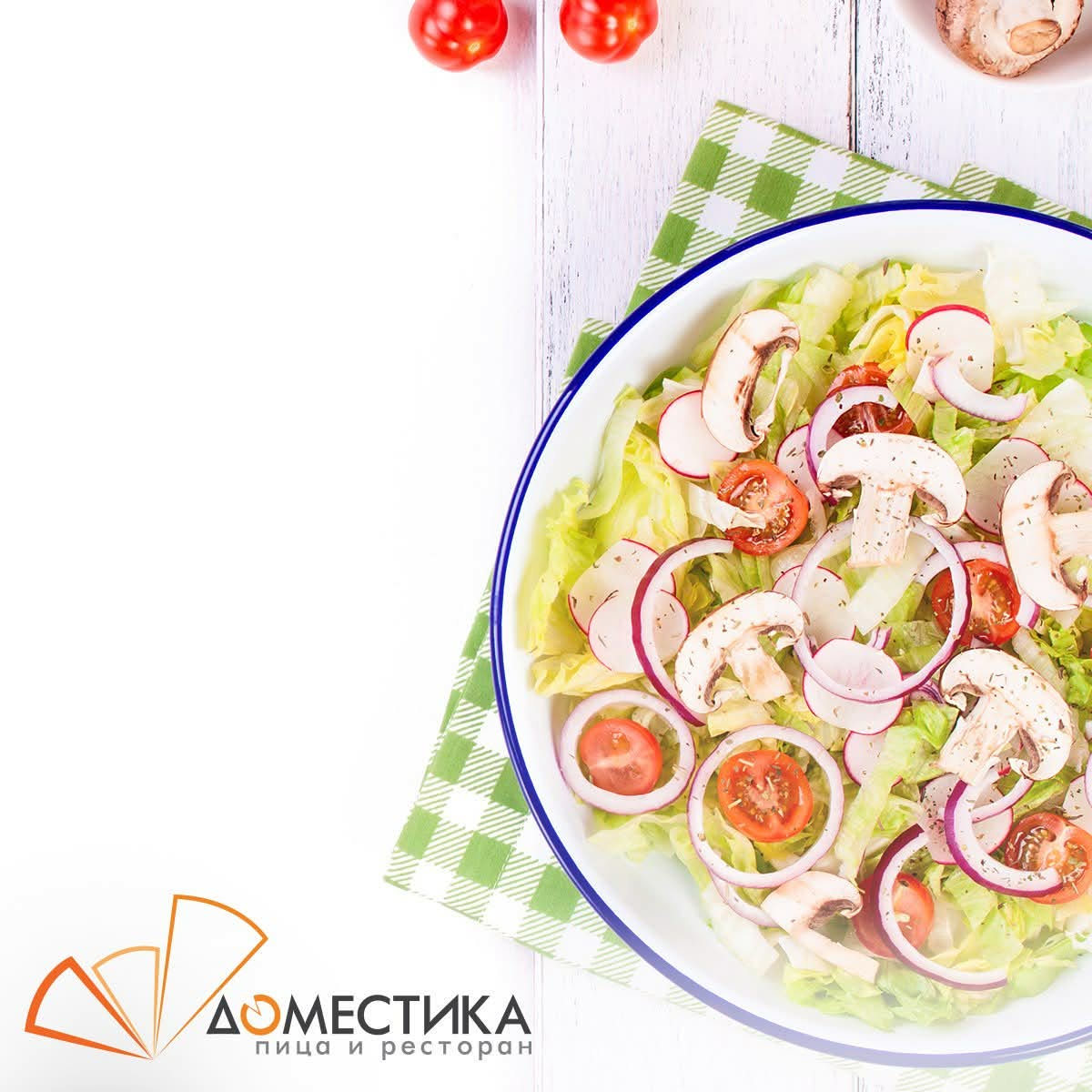Ресторанскиот дел на Доместика е вистинскиот адут на објектот. Менито нуди богат избор на јадења од современата интернационална и медитеранска кујна, подготвени од свежи и внимателно селектирани состојки. Посебен акцент се става на вкусовите, презентацијата и балансот меѓу традиционални рецепти и модерни гастрономски техники. Во понудата може да се најдат разновидни предјадења, главни јадења со месо и риба, свежи салати, како и десерти кои го заокружуваат секој оброк.