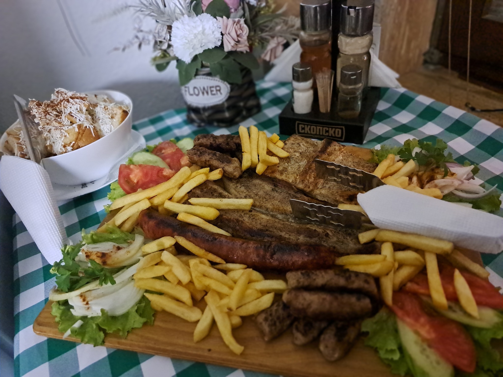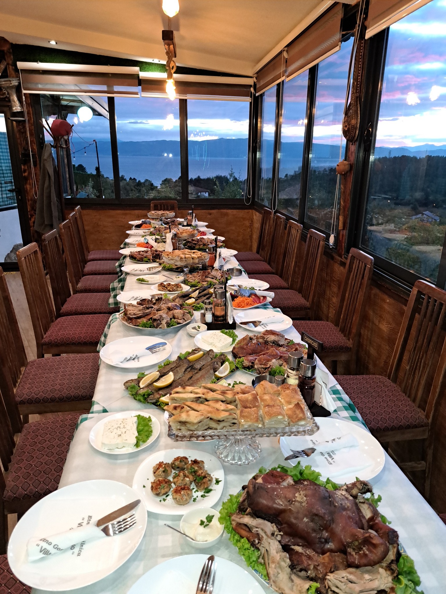 Амбиентот е уреден во препознатлив етно стил, со топли детали кои создаваат пријатна и релаксирачка атмосфера. Просторот е погоден за семејни ручеци, дружења со пријатели и туристи кои сакаат да ја почувствуваат македонската традиција одблизу, надополнето со љубезна услуга и внимателен персонал.