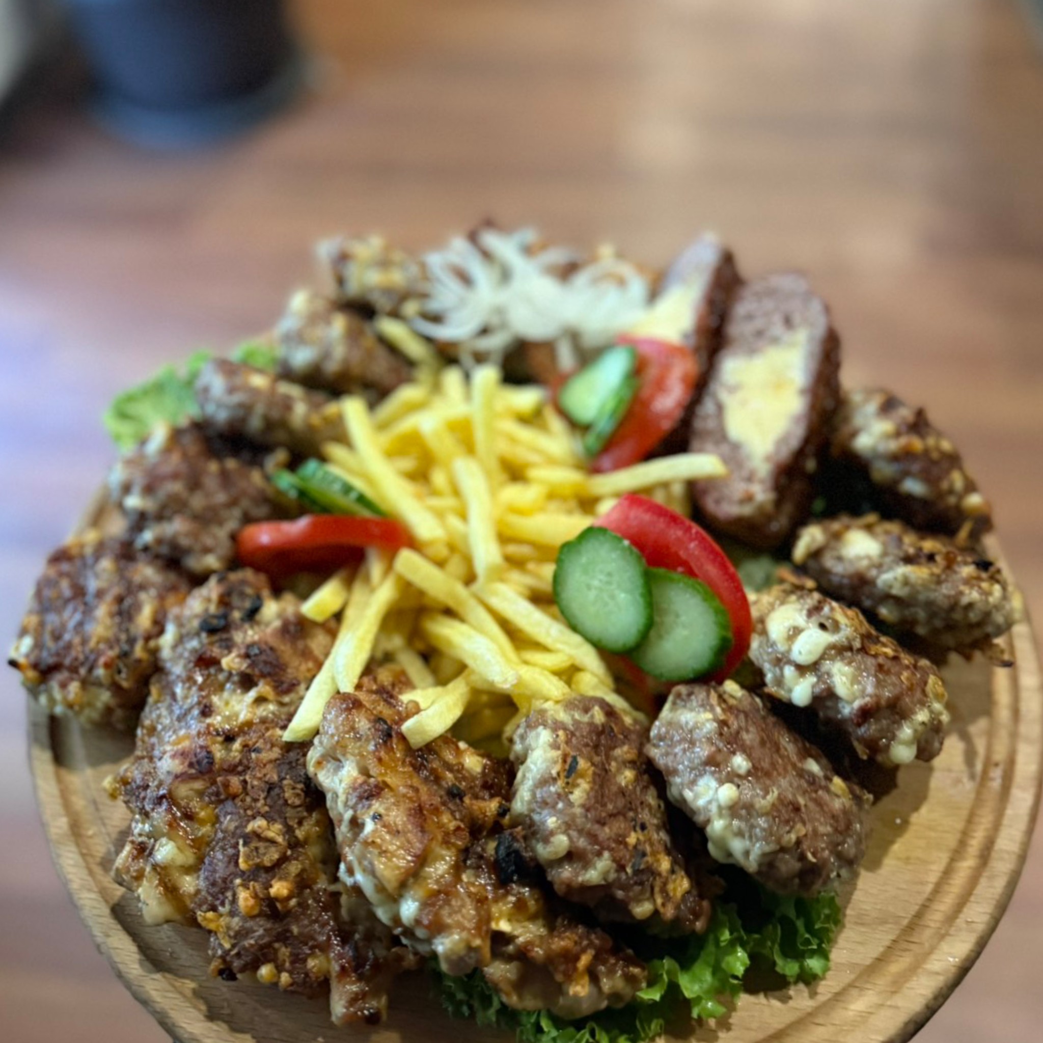 Во менито доминираат традиционалните македонски специјалитети подготвени со свежи состојки и проверени рецепти – сочни скара специјалитети, богати манџи, домашни салати и топли печива кои будат спомени на вистинска домашна трпеза. Секое јадење е внимателно приготвено за да го задржи автентичниот вкус и квалитет по кој гостилницата е препознатлива.