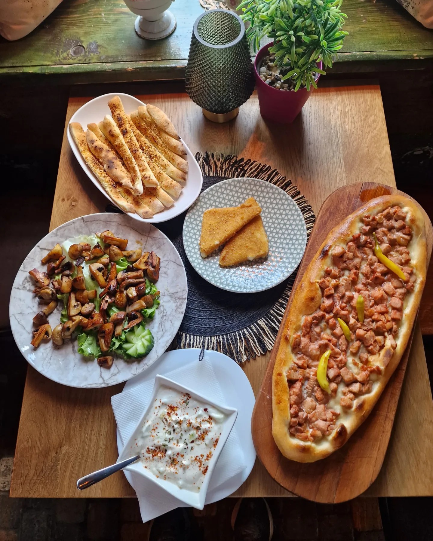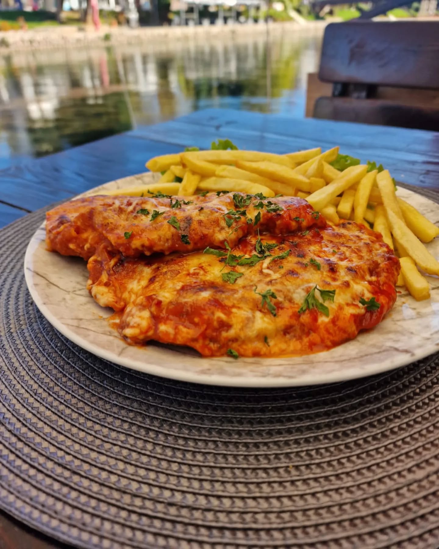 Амбиентот е топол и уютен, со рустичен стил и опуштена атмосфера, погодна за семејни ручеци, дружења со пријатели или романтични вечери. Локацијата покрај реката и централната позиција во Струга го прават ресторанот лесно достапен и често посетуван од локални гости и туристи.