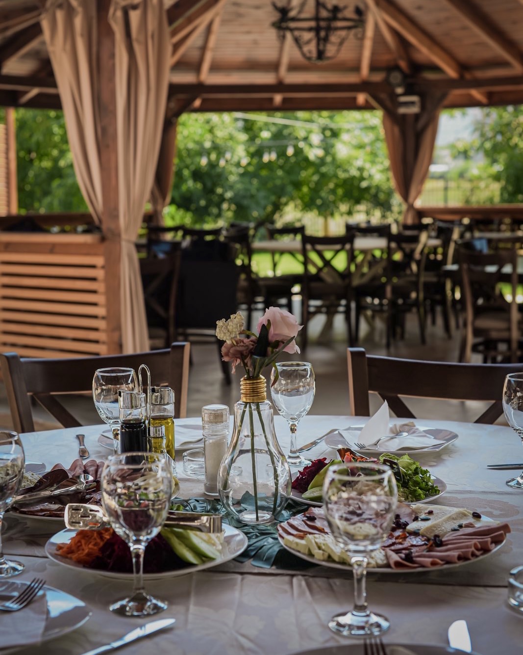 Амбиентот во Ресторан Дворец е елегантен и комфорен, идеален за семејни ручеци, деловни средби, романтични вечери, прослави и свечени настани. Како ресторан за прослави во Скопје, Ресторан Дворец нуди простор, услуга и организација на високо ниво. Професионалниот персонал и брзата услуга дополнително го зацврстуваат имиџот на ресторан со квалитет и доверба.