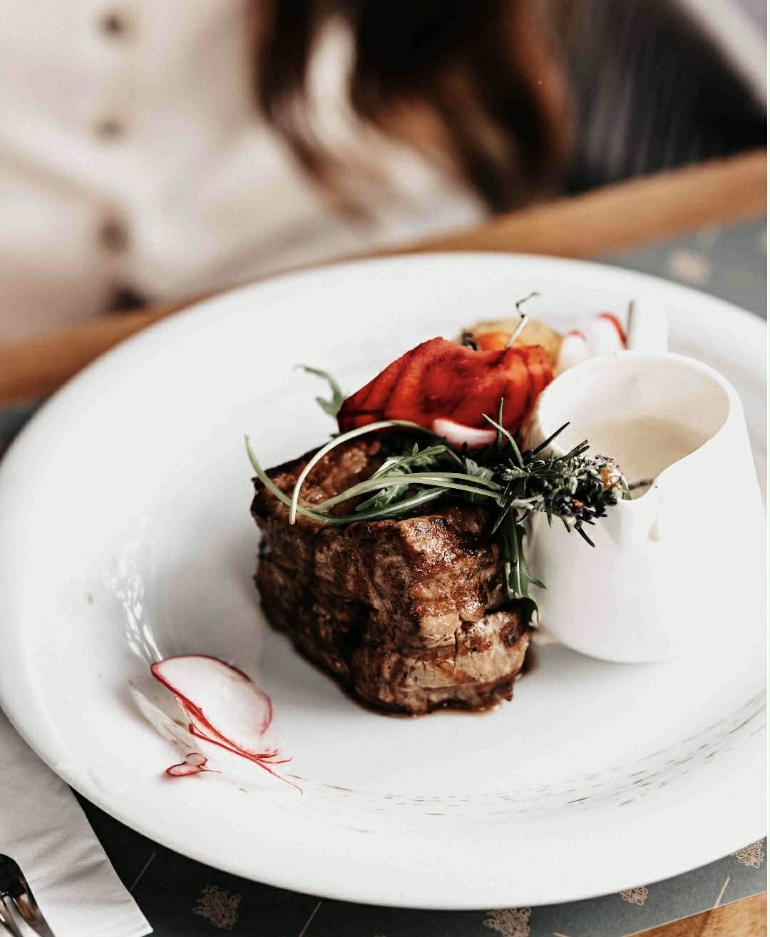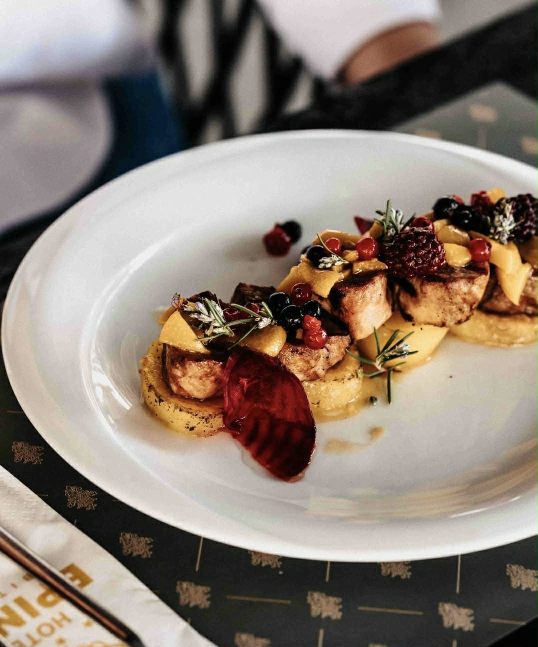 Амбиентот е модерен, уреден и топол, усогласен со стилот и комфорот на Хотел Епинал, што создава пријатна атмосфера за опуштено уживање во храната. Професионалниот персонал нуди услуга на високо ниво, со внимание кон деталите и потребите на секој гостин.