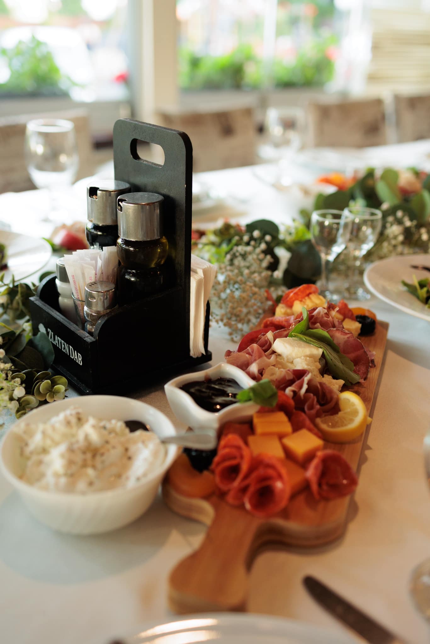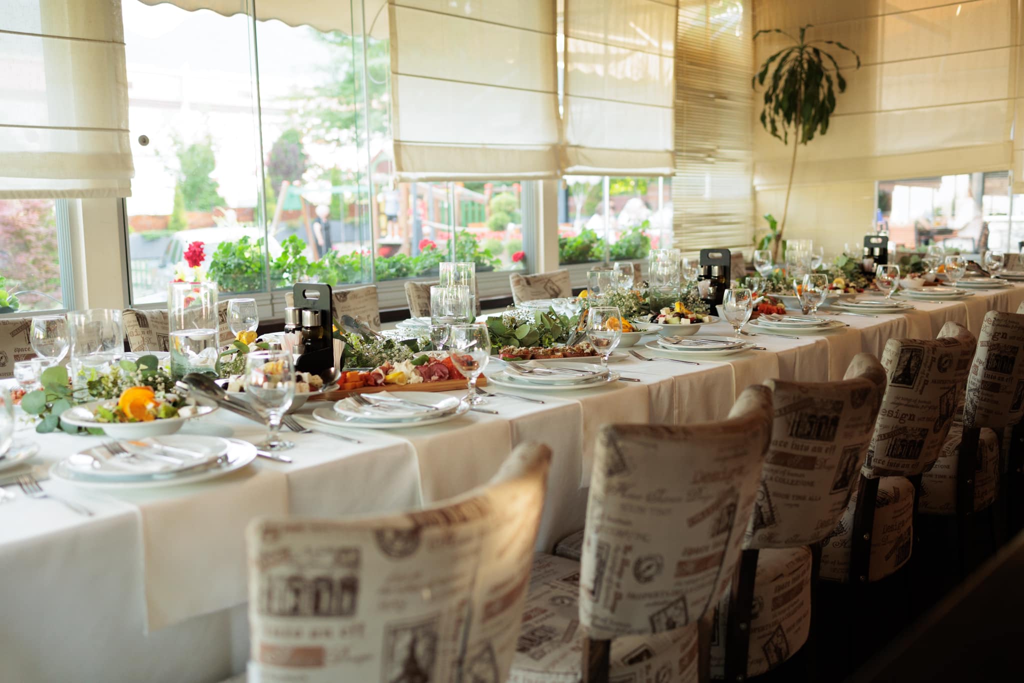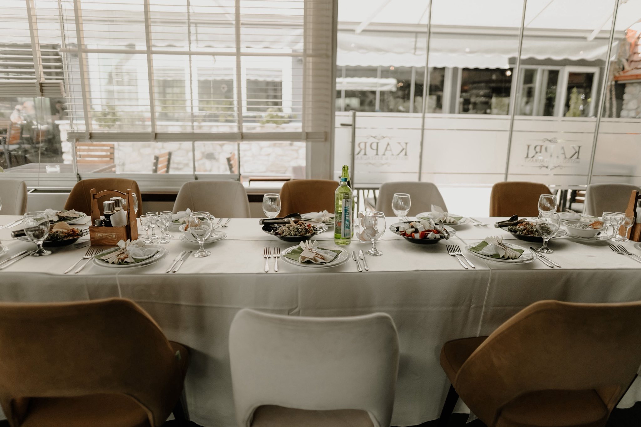 Амбиентот на ресторантскиот дел е топол и гостопримен, со елегантна комбинација на модерни линии и класични детали. Просторот е дизајниран така што создава чувство на удобност и интимност, со доволно светлина и пријатна музика, што го прави идеален за семејни ручеци, деловни средби, романтични вечери или опуштено дружење со пријатели. Мебелот е внимателно избран за да обезбеди комфор, додека декорацијата внесува ноти на традиционалниот стил, што го прави секој оброк уште поспецијален.