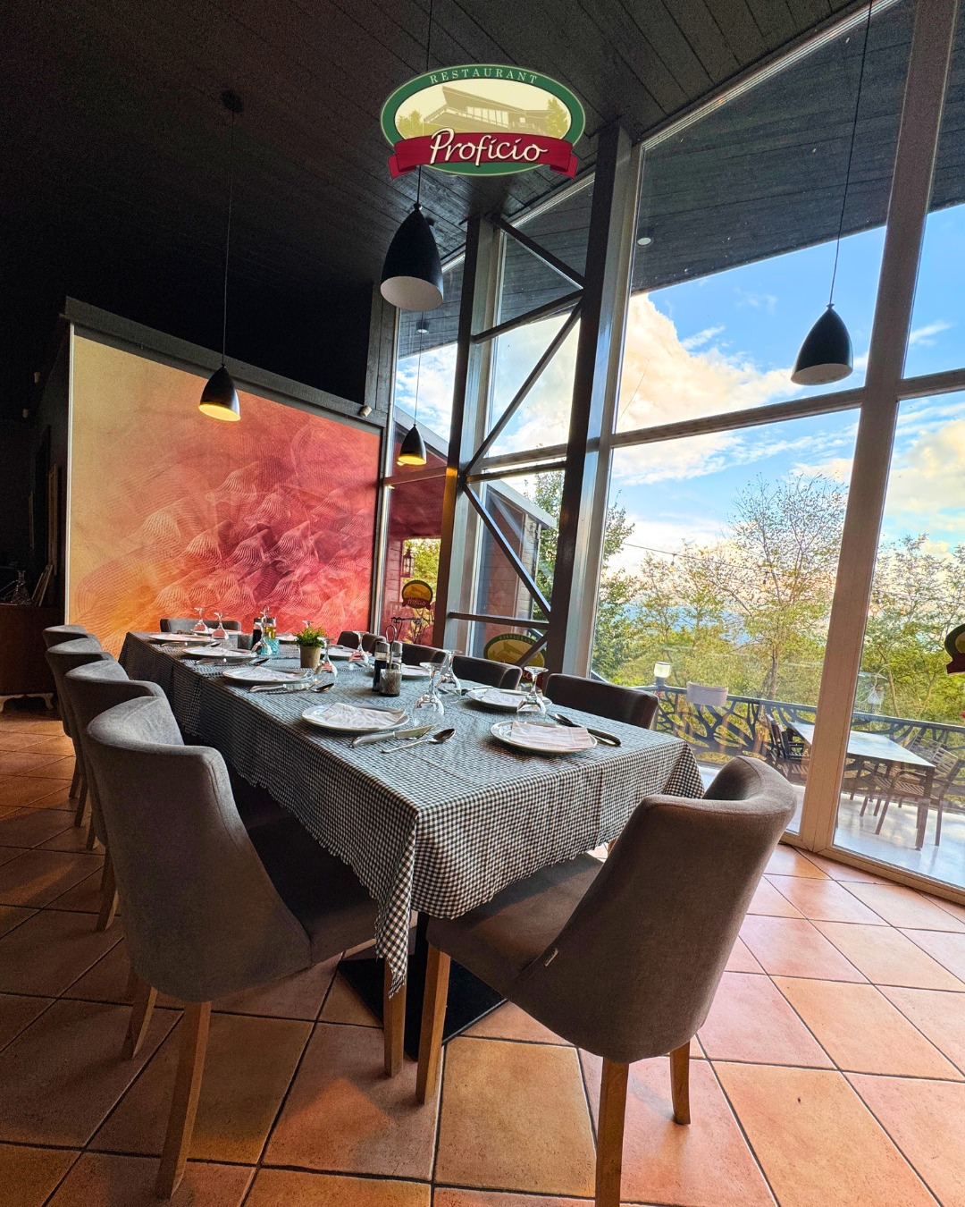 Ресторан Proficio се издвојува со својот внимателно уреден амбиент, пространа тераса и поглед кој одзема здив, создавајќи идеална атмосфера за релаксиран ручек, романтична вечера или свечени прослави. Природата, тишината и чистиот воздух го прават совршено место за бегство од секојдневието и уживање во секој момент.