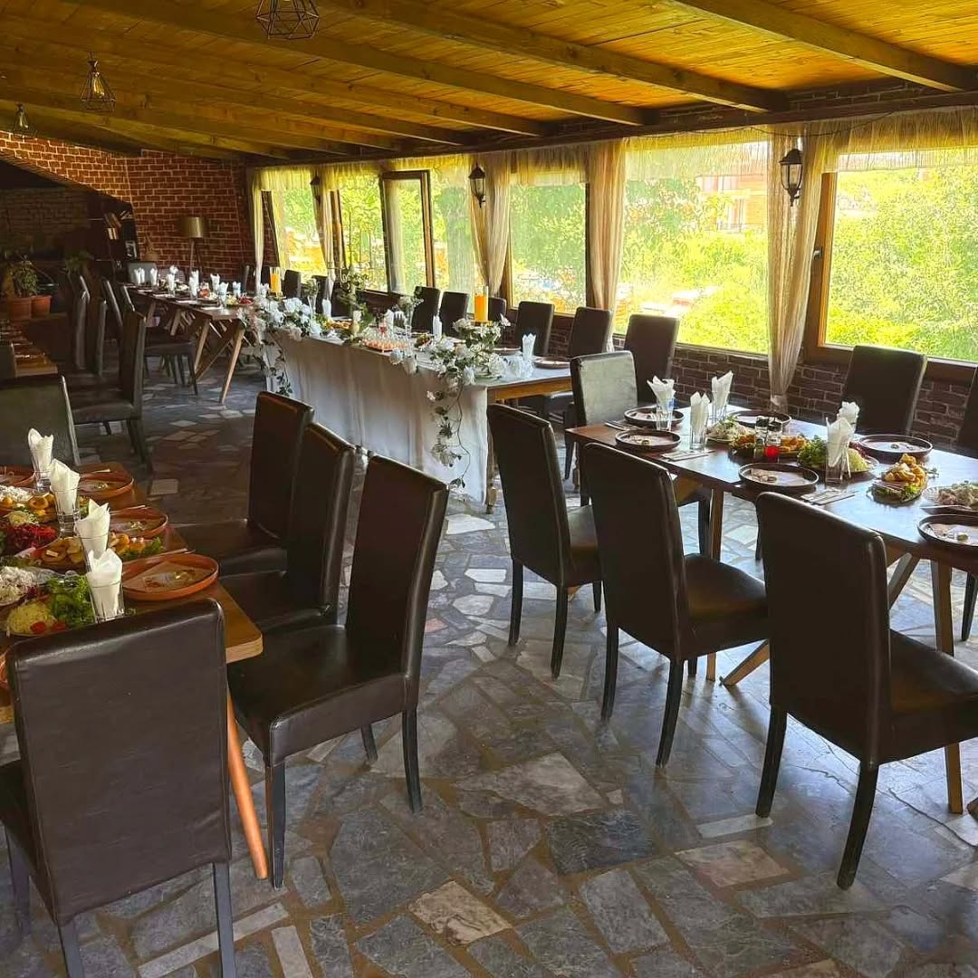 Просторот е уреден во класичен стил со топли тонови, што создава опуштена и пријателска атмосфера, идеална за семејни ручеци, дружења со пријатели или деловни средби. Ресторанот располага со доволно простор за поголеми друштва и организирање на прослави, свечености и приватни настани.