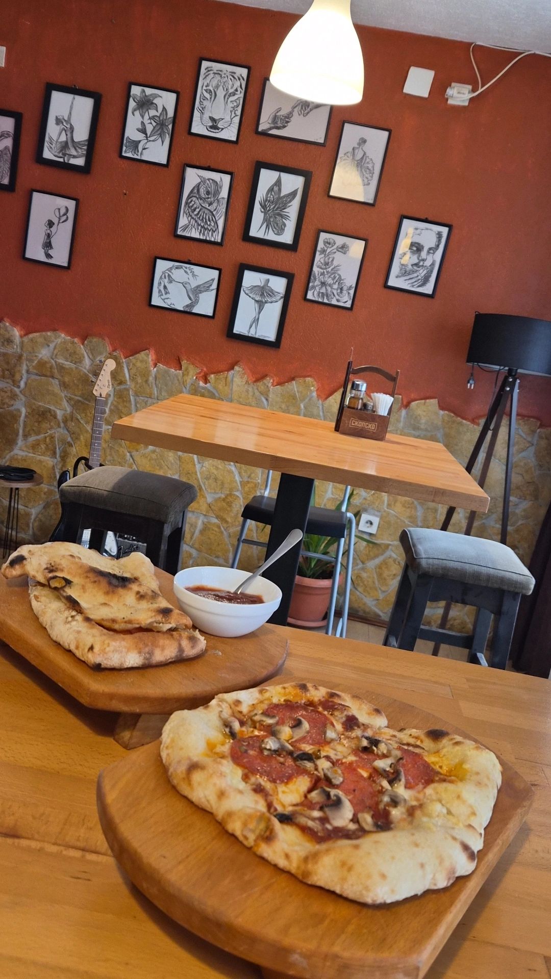 Интериерот е современ и стилски, со пријатни светлосни ефекти и внимателно уредени детали кои создаваат опуштена и топла атмосфера. Училница Bar & Kitchen е идеално место за секој кој сака да ужива во квалитетна храна, врвна услуга и пријатна атмосфера, без разлика дали станува збор за брз ручек, вечерна дружба или специјална прослава.