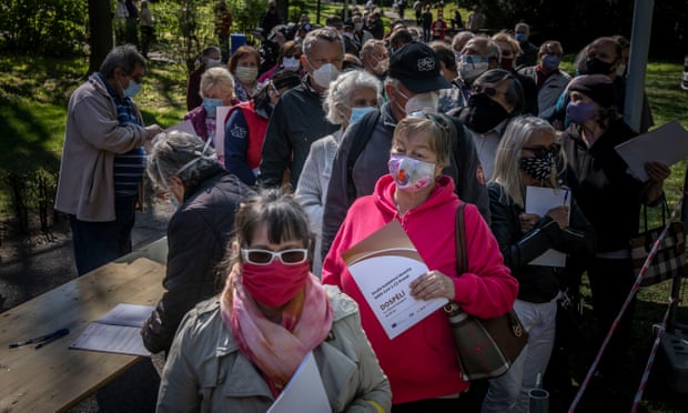 Лица во ред чекаат тестирање за Ковид-19 во Прага на 23.04 Photograph: Gabriel Kuchta/Getty Images