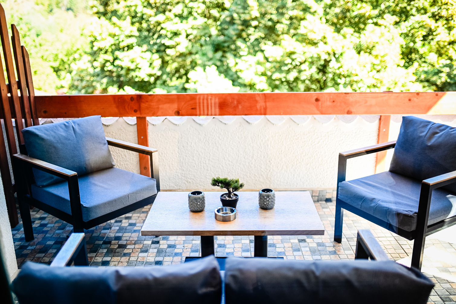 A summer terrace with a view of the lake