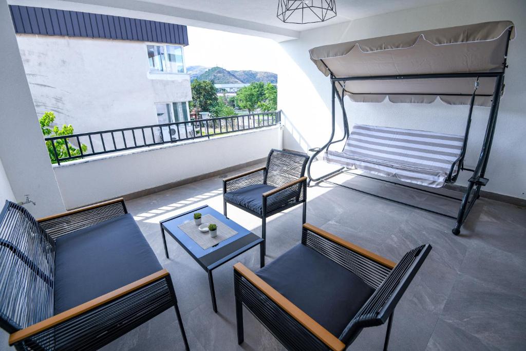 балкон со поглед кон градот (во одредени соби)
