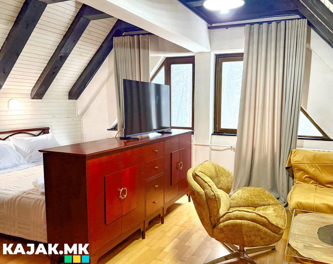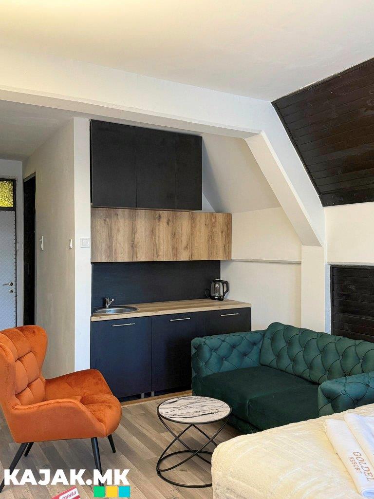 - Еден апартман со сопствен тоалет, кујна и два дополнителни кревети на расклопување - цена 4000 денари за соба по ноќевање