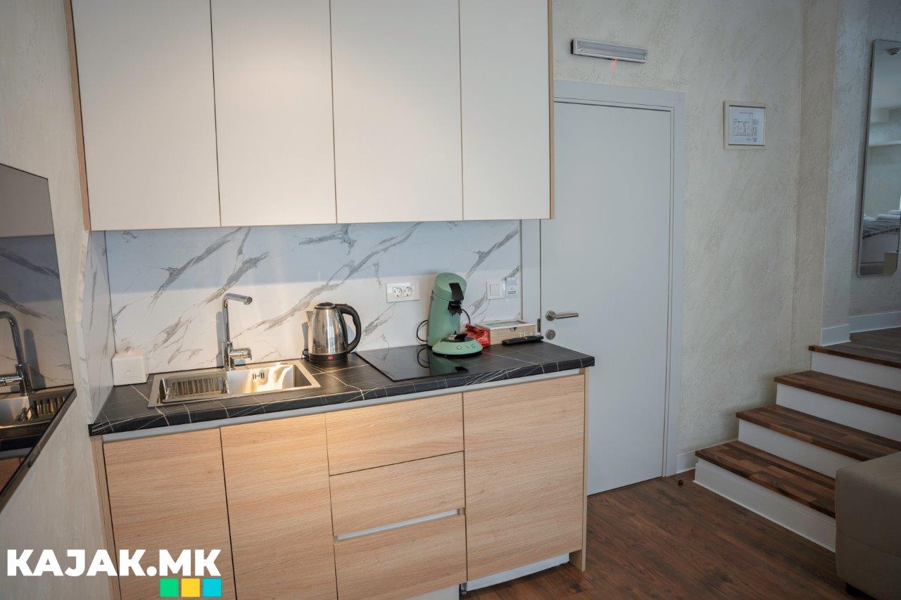 Секој апартман има целосно опремена кујна, со: