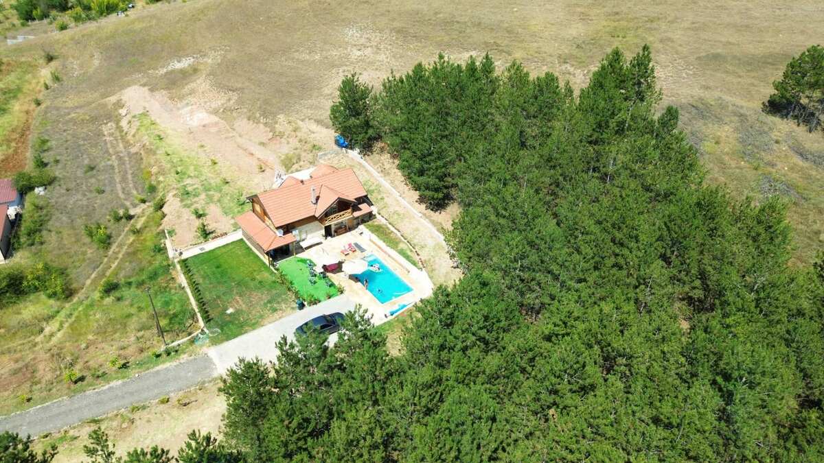 A uniquely built villa in mountain style, surrounded by a pine forest that guarantees privacy and features a seasonal summer pool in the yard.