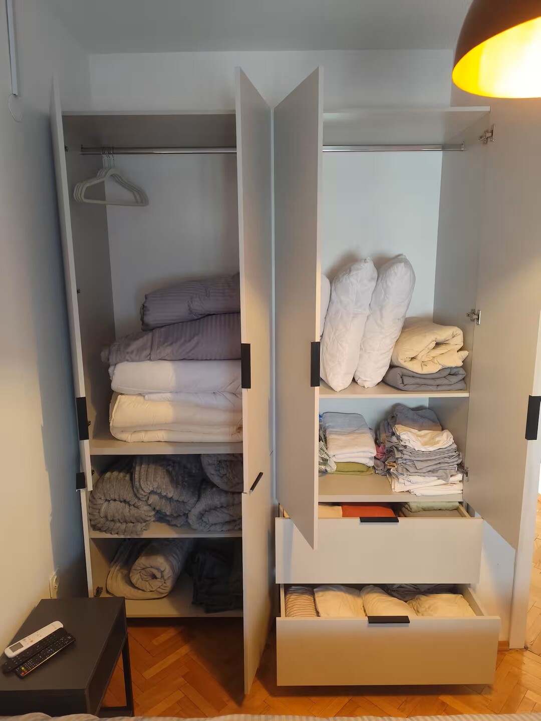 апартманот има повеќе комплети постелнина, ќебиња, перници, пешкири и
