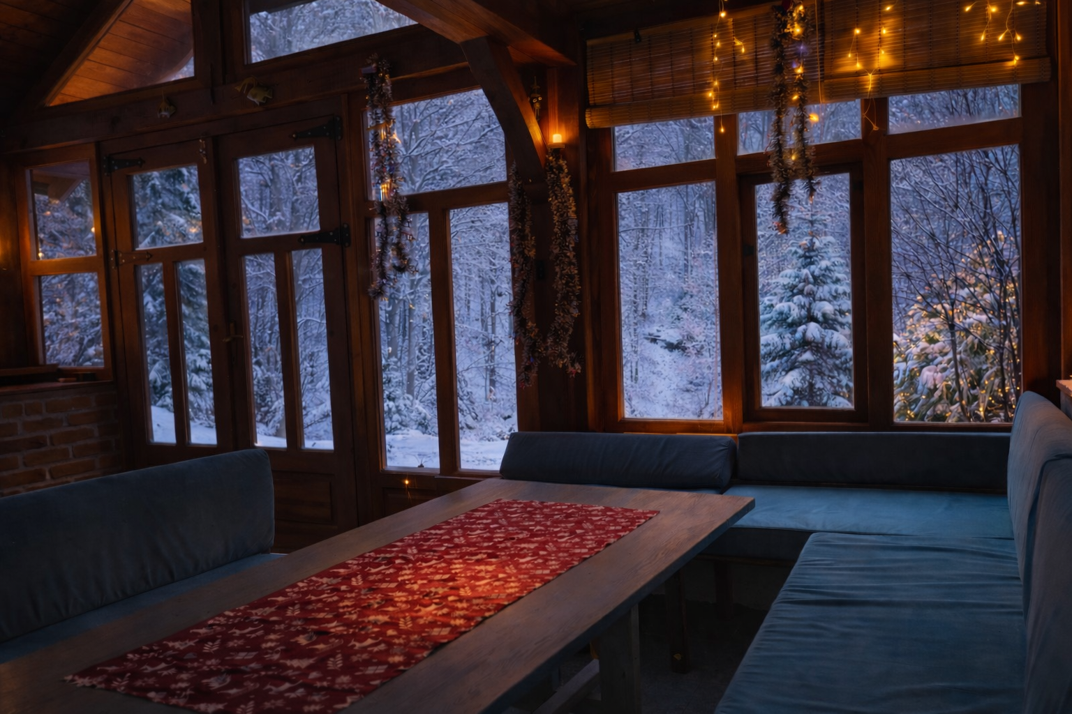 Летна кујна проширена и затворена со големи прозорци и дневен престој
